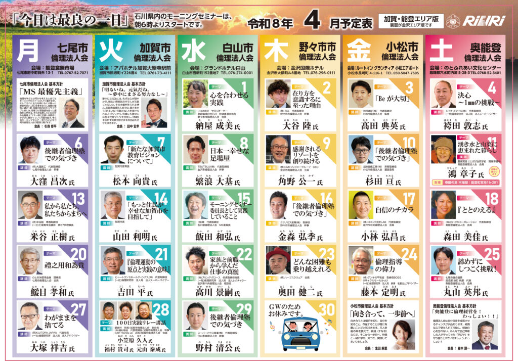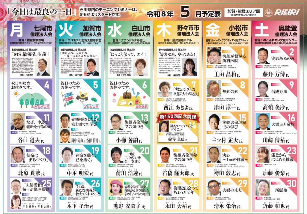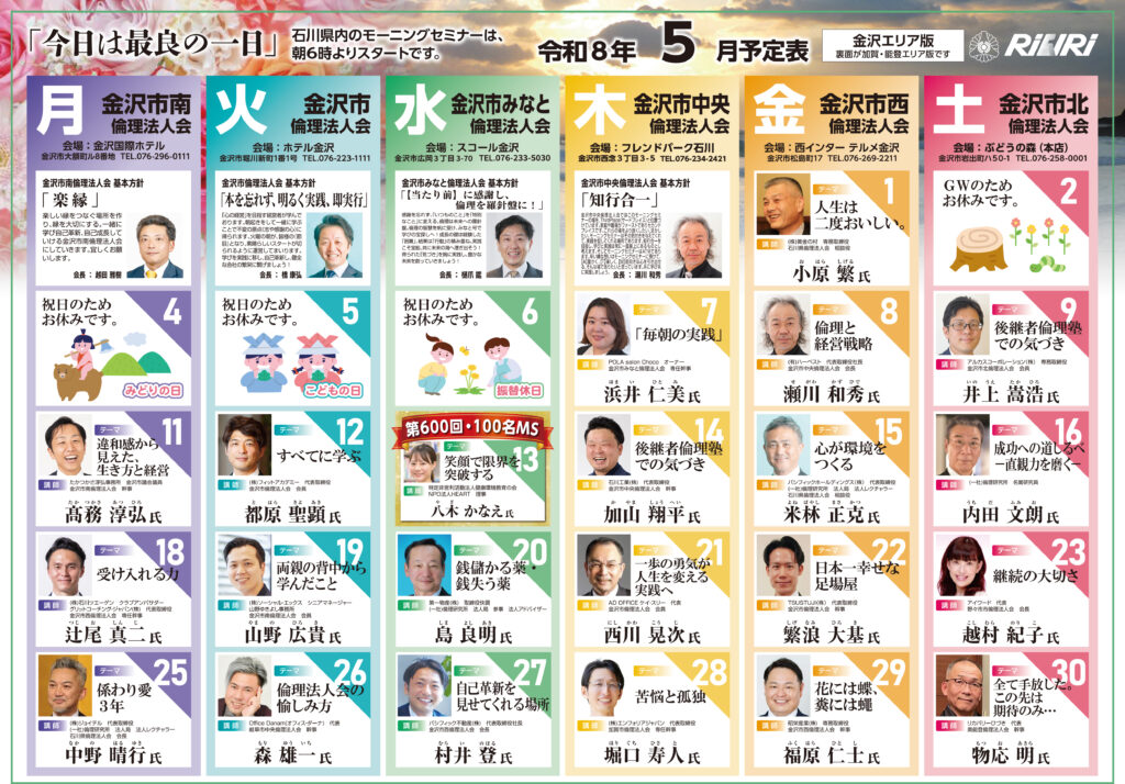 倫理法人会は9月が年度初めです。会員企業が一丸となって円滑に活動できるよう、純粋倫理に根差した「倫理経営」を学び、実践し、その輪を広げていけるよう取り組んでいます。
